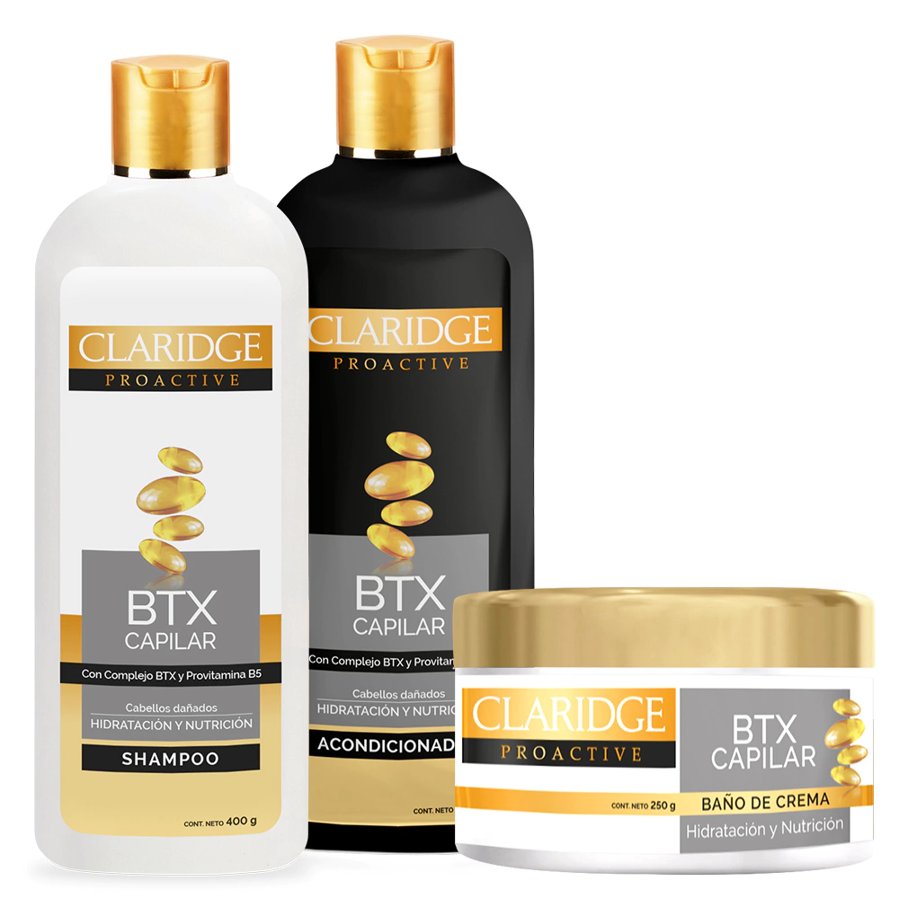 Claridge desarrollo su fórmula BTX Capilar que combina las propiedades hidratantes y reconstructivas del Complejo BTX con el poder de nutrición y restauración de la provitamina B5 y la keratina.