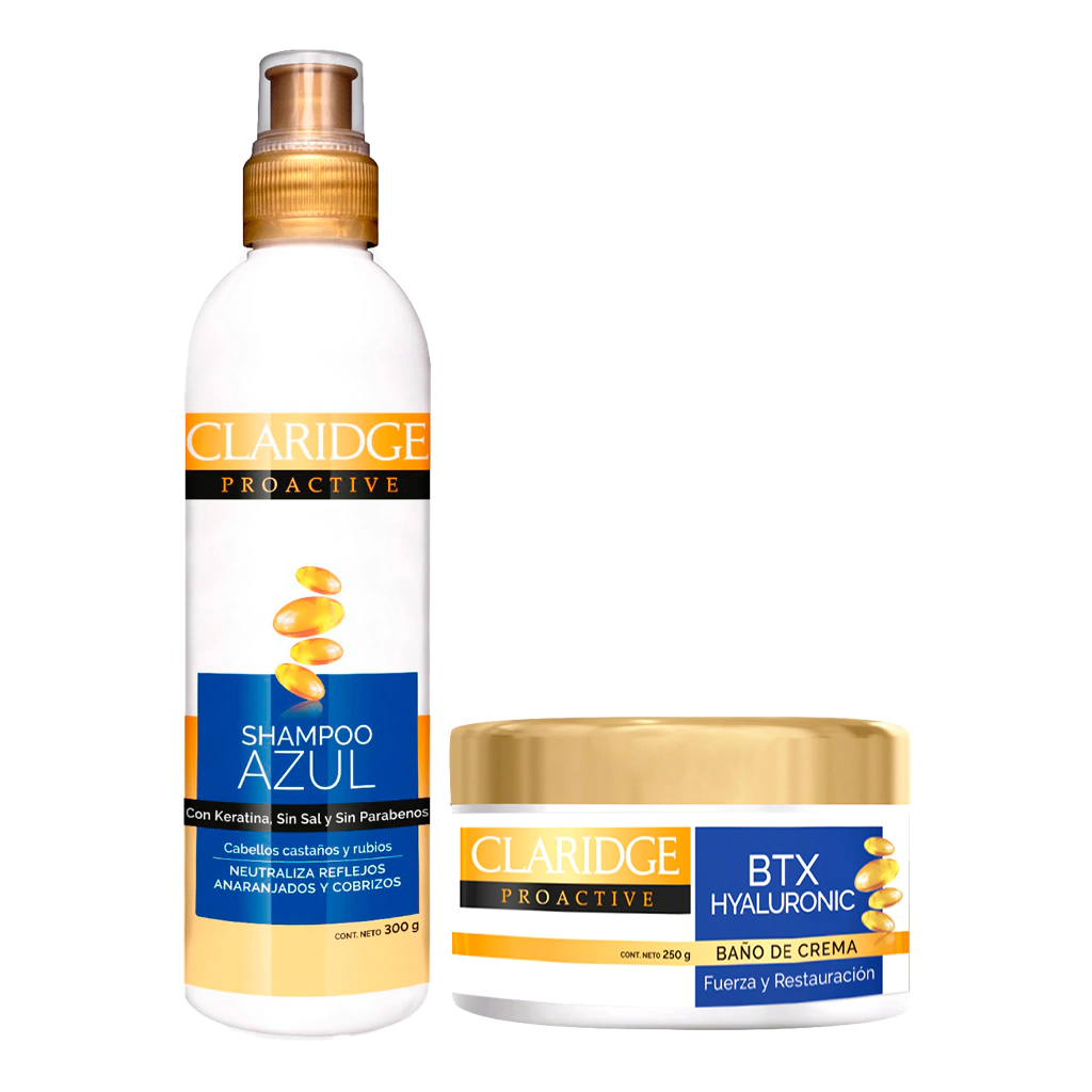 MODO DE USO: lavar el cabello con el shampoo azul dejar actuar unos minutos en el cabello y luego enjuagar con abundante agua tibia hasta que no salga mas color luego aplicar el acondicionador Claridge acorde al tipo de cabello. Se recomienda utilizar guantes para aplicar el shampoo. Utilizar hasta 2 veces por semana. Este producto no fue fabricado para su uso en niños.